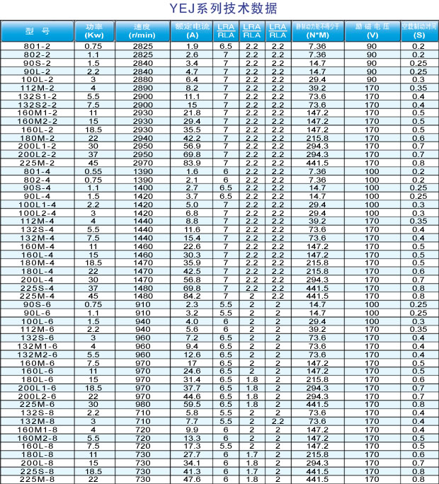YEJ系列制動(dòng)電機(jī)型號(hào):