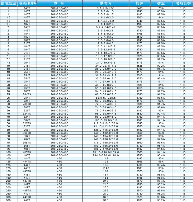 NEMA超高效電動機 該系列電機是尼馬高效電機的升級換代產品,安裝尺寸等同于尼馬高效電機,易于替換。 產品已獲得美國及加拿大政府的能效認證,證書號:CC082A、EEV2234888。